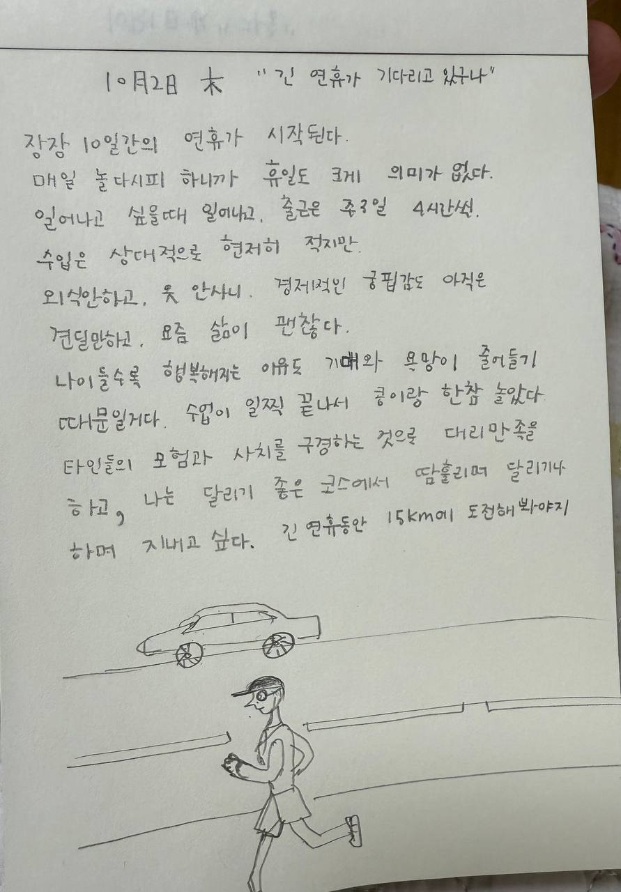타인들의 모험과 사치를 구경하는 것으로 대리만족을 하고, 나는 달리기 좋은 코스에서 땀 흘리며 달리기 하며 지내고 싶다. 긴 연휴동안 15km에 도전해봐야지.