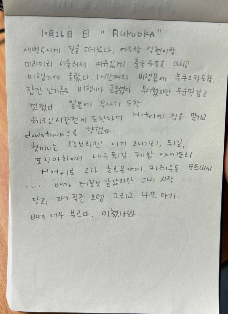 첫 끼는 라멘. 이어 오니기리. 튀김. 포장마차에서 새우튀킴, 케밥. 야끼토리. 호텔로 오다 호르몬 야끼. 카레우동, 모쯔나베.... 배가 터질 것 같았지만 다시 시작. 자기직전 오뎅. 그리고 나토 마키. 배가 너무 부르다. 미쳤나봐.
