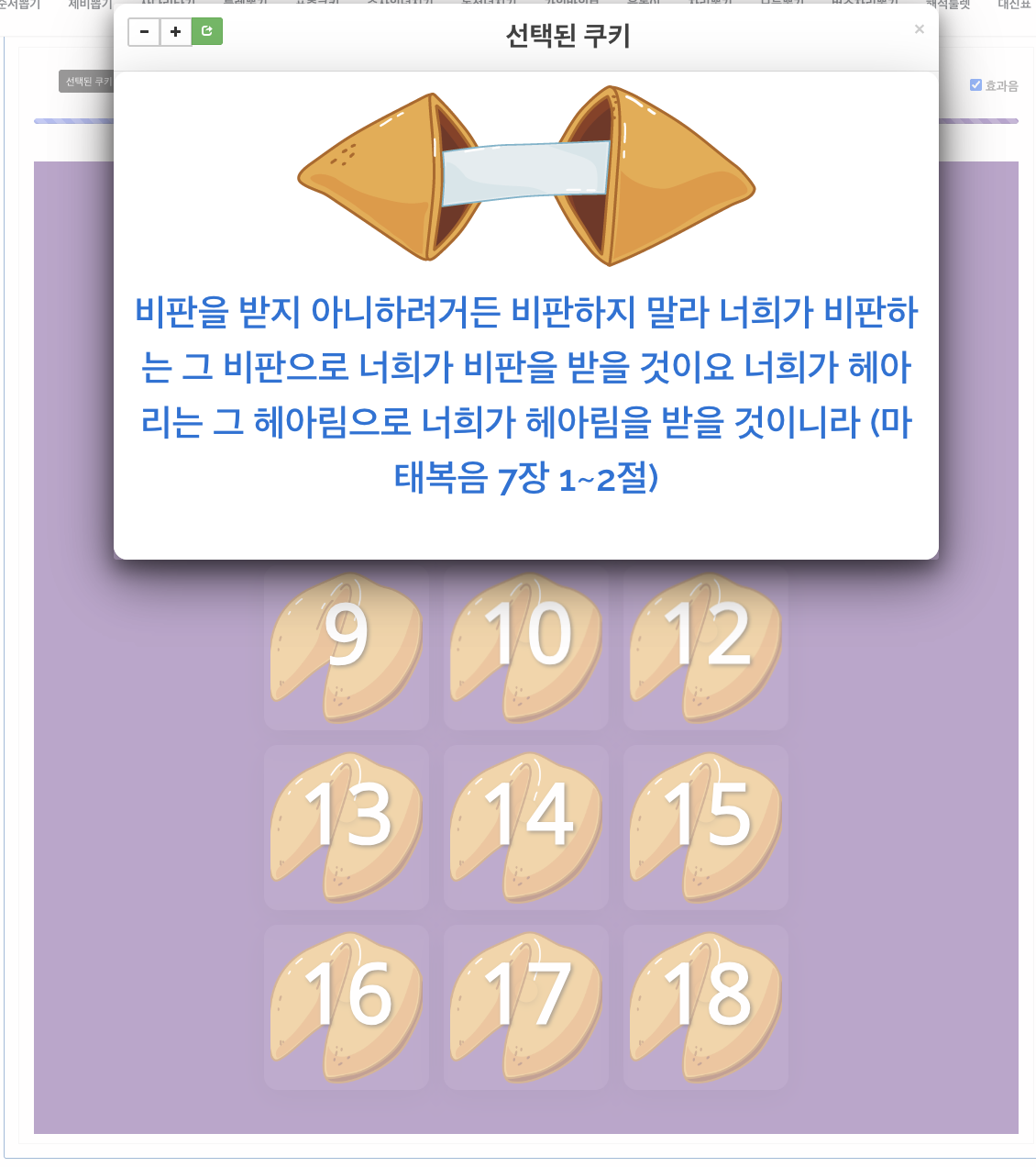 린!! ㅎㅎ내일 성경통독 새해 첫 모임에서 통독 멤버들과 <커피쏘기 핀볼게임> 한번 제안 해봐야겠다. 내친김에 매해 아날로그 방식으로 진행했던 <성경말씀 뽑기>도 디지털 포춘쿠키 방식으로 만들어봤다. 오우, 재밌는데. 새해 첫 성경통독이니 멤버들 위해 재미있게 새해찬양도 부르고, 말씀도 전하고, 새해말씀카드도 뽑고, 새해목표도 나눠봐야지. 준비해간 것들, 멤버들이 좋아해준다면 좋겠다.