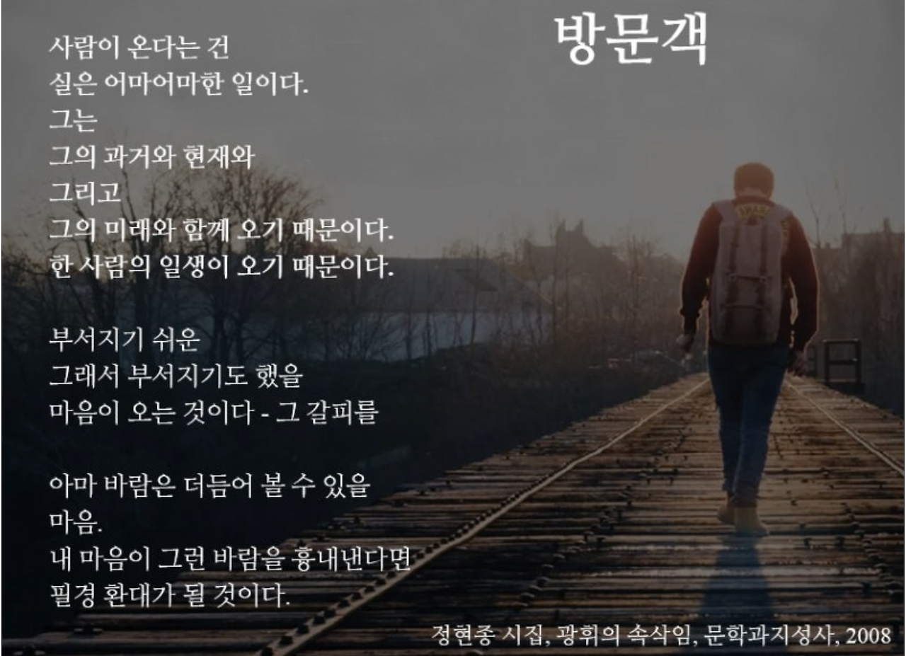 두해 전, 한창 수업을 해주셨던 ** 교수님도 갑작스런 배우자상이 있었다. 근래들어 그렇게 무거운 장례식장은 처음이라 장례식장에 다녀온 뒤로도 한 1년간 교수님의 마음이 걱정될 정도였다. 그래도 그 힘든 자리에 함께 있어드렸다는 것이 조금이나마 위안이 되었다.