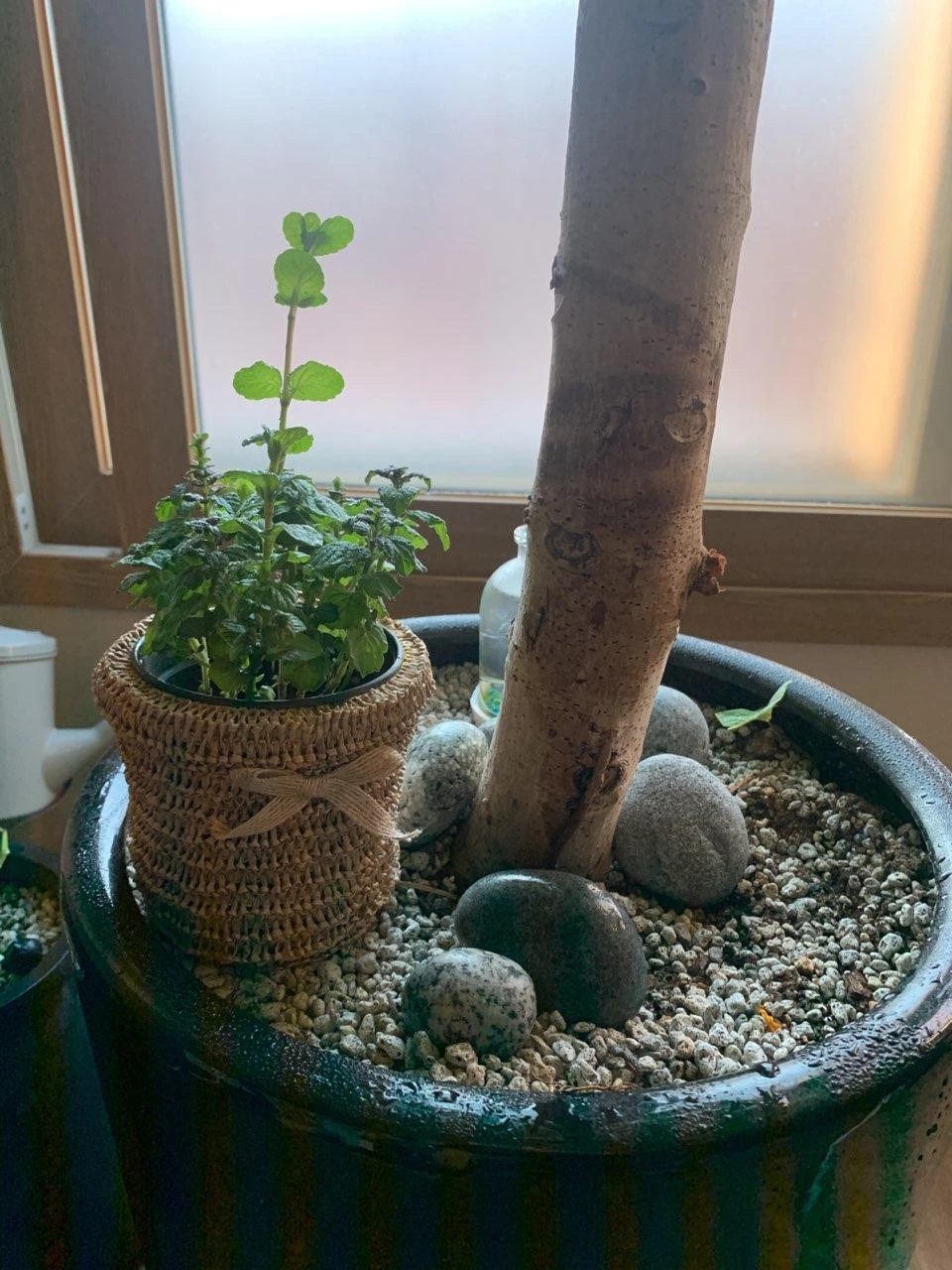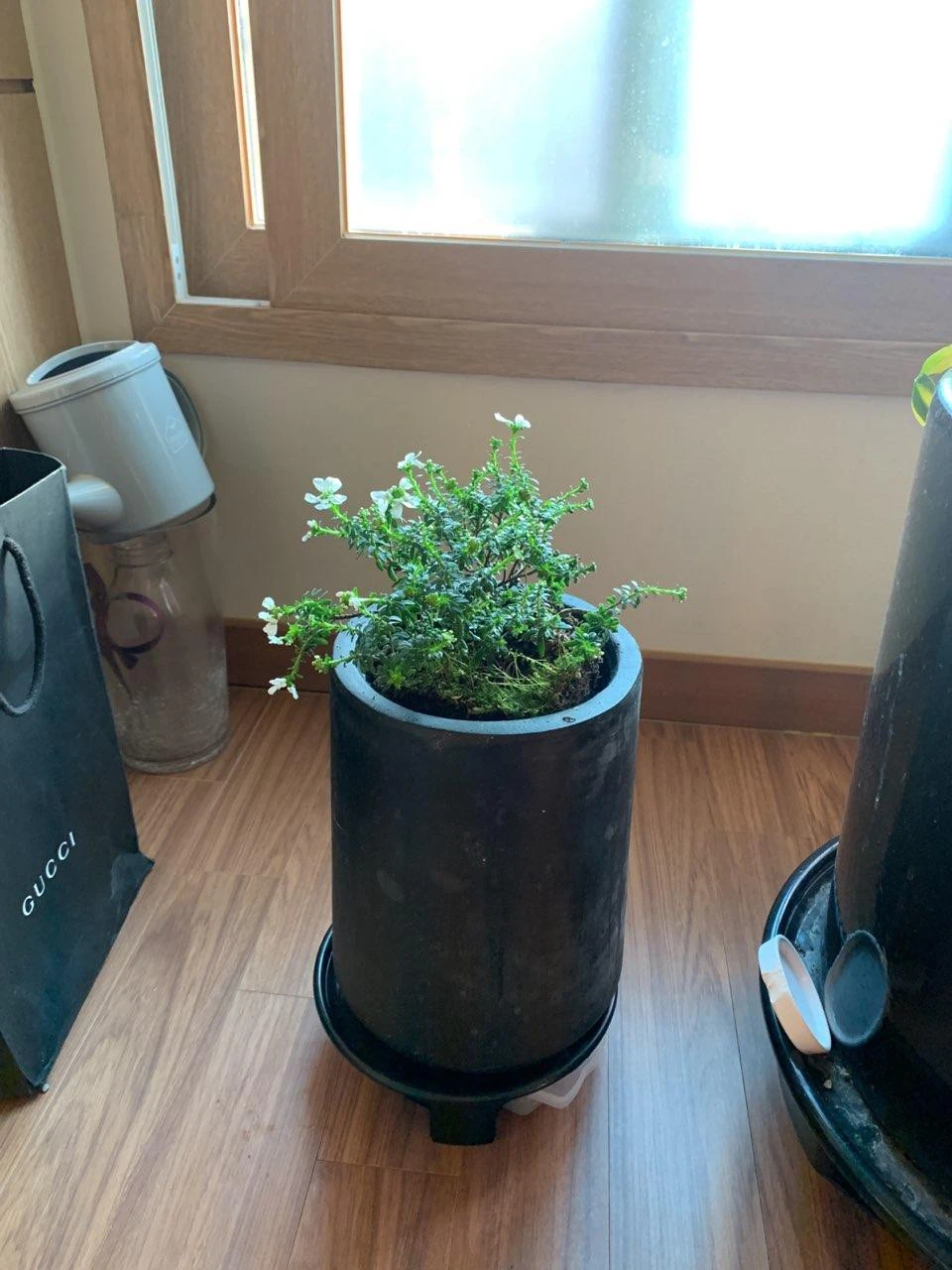 2012년도 회사 식구들이 집들이 기념으로 사준 수경이다. 수경이 오래간다는 소리를 듣고, 화초 잘 못키우는걸 잘아는 똑디 연이가 골라주었다. 7년째 용케 잘 살고 있다. 푸르매라는 이름답게, 그간 푸르게 잘 자라주었는데 유리병을 갈아주면서….아이들이 지금 고군분투 중이다. 하지만 결국 운명했다. 잘 자란다고 너무 자주 집을 옮겨줬는데 아마도 스트레스가 심했던 모양이다.
