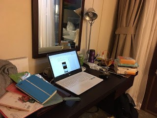 지금 나는 배낭, 컴퓨터 테이블에서 네게 편지를 쓰고있다.