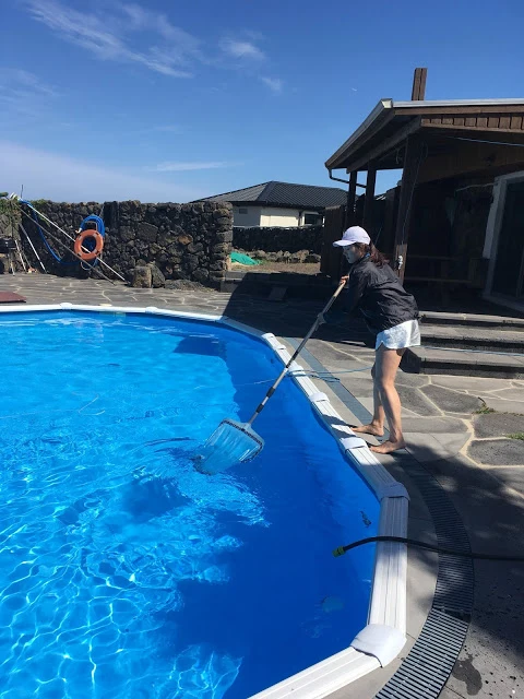 뜰채로 수영장에 빠진 벌레 구조하기 '극한알바 2' ㅎㅎ