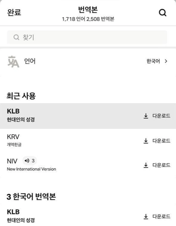 2. 어플에서 KLB 현대인의 성경으로 기본을 바꾸어줍니다.