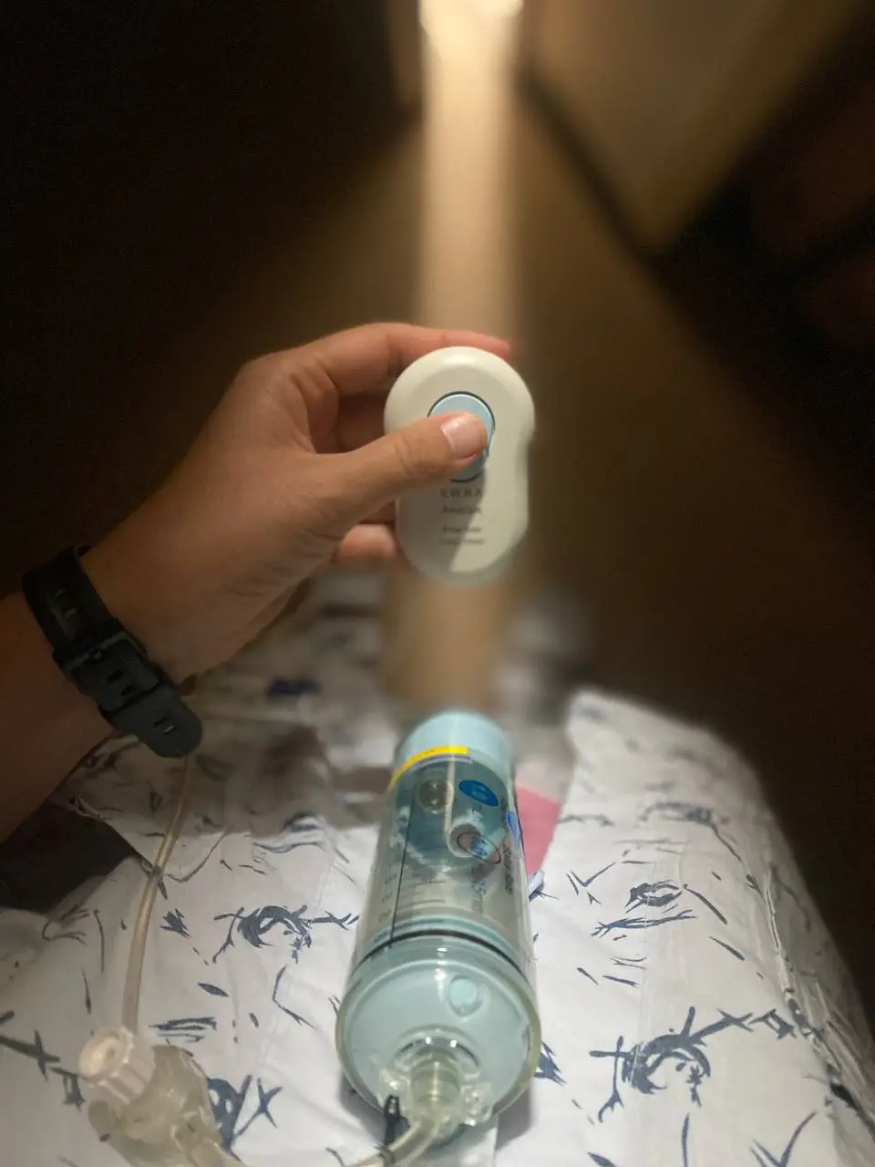 (수술 후 진통제를 링거로 연결해서 맞게 되는데, 링거와 연결된 버튼을 누를때마다 진통제가 투입되는 시스템이다)