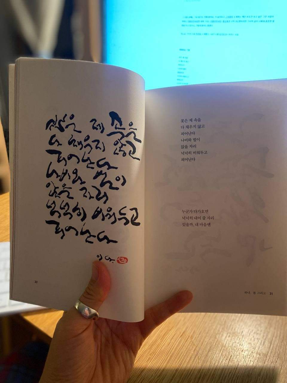 무릇 시라는 건, 찬찬히 시인의 마음과 시를 쓰게 된 배경을 떠올리며 한구절 한구절 음미하듯 읽어야하는데 성질급한 나는 번갯불에 콩볶듯이 서문부터 마지막 페이지까지 빠르게, 엄청 빠르게 읽어내려갔다.