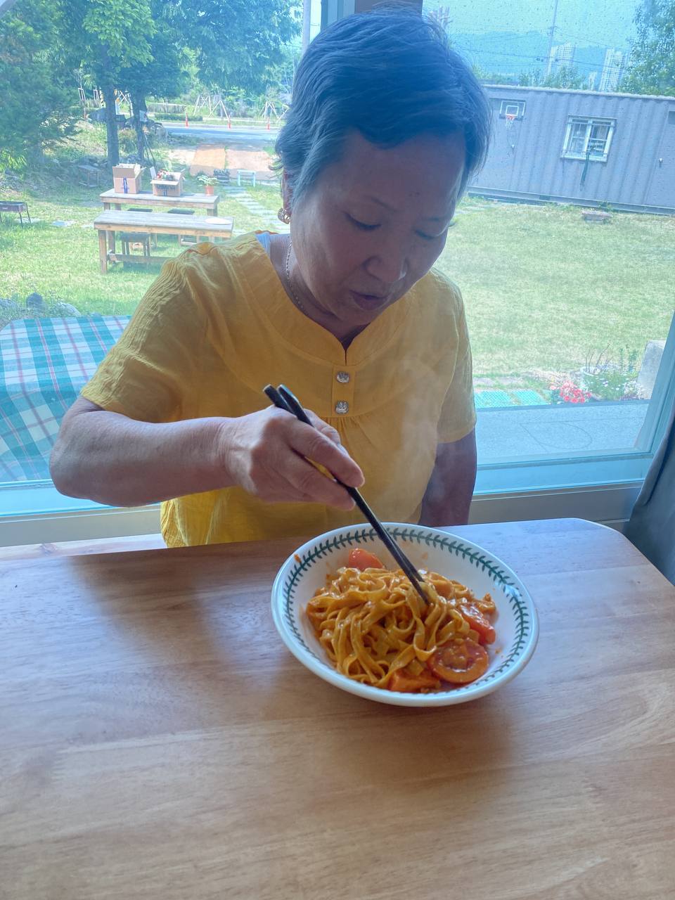 단백질 쉐이크로 주말 아침을 해결하기엔 너무도 아쉬운 법. 형부는 집에 가는 나를 따라와 라면 하나를 끓여달라고 했다. 라면에, 떡갈비까지 구워서 상추쌈에 밥한상을 뚝딱 차려드렸다. 엄마에게는 엄마가 좋아하는 투움파 파스타를 끓여드렸다. 근데 트러플 향이 가미된거라, 나는 좀 별로였다. 트러플 향이 진하게 들어간 피자, 파스타, 리조또, 치킨 모두 내 취향이 아니다. 엄마도 별로였는지 조금 드시다 “심바갖다줘라”라고 말씀하셔서 레오랑 심바, 탄이에게 나눠주었다. 엄마는 파스타를 드셨다는 사실을 지우고 떡갈비에 밥을 맛있게 드셨다 ㅋㅋ