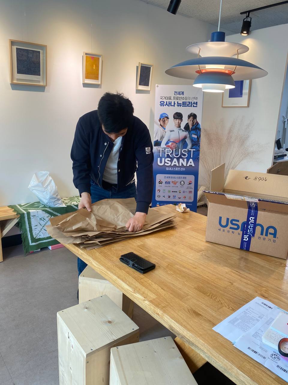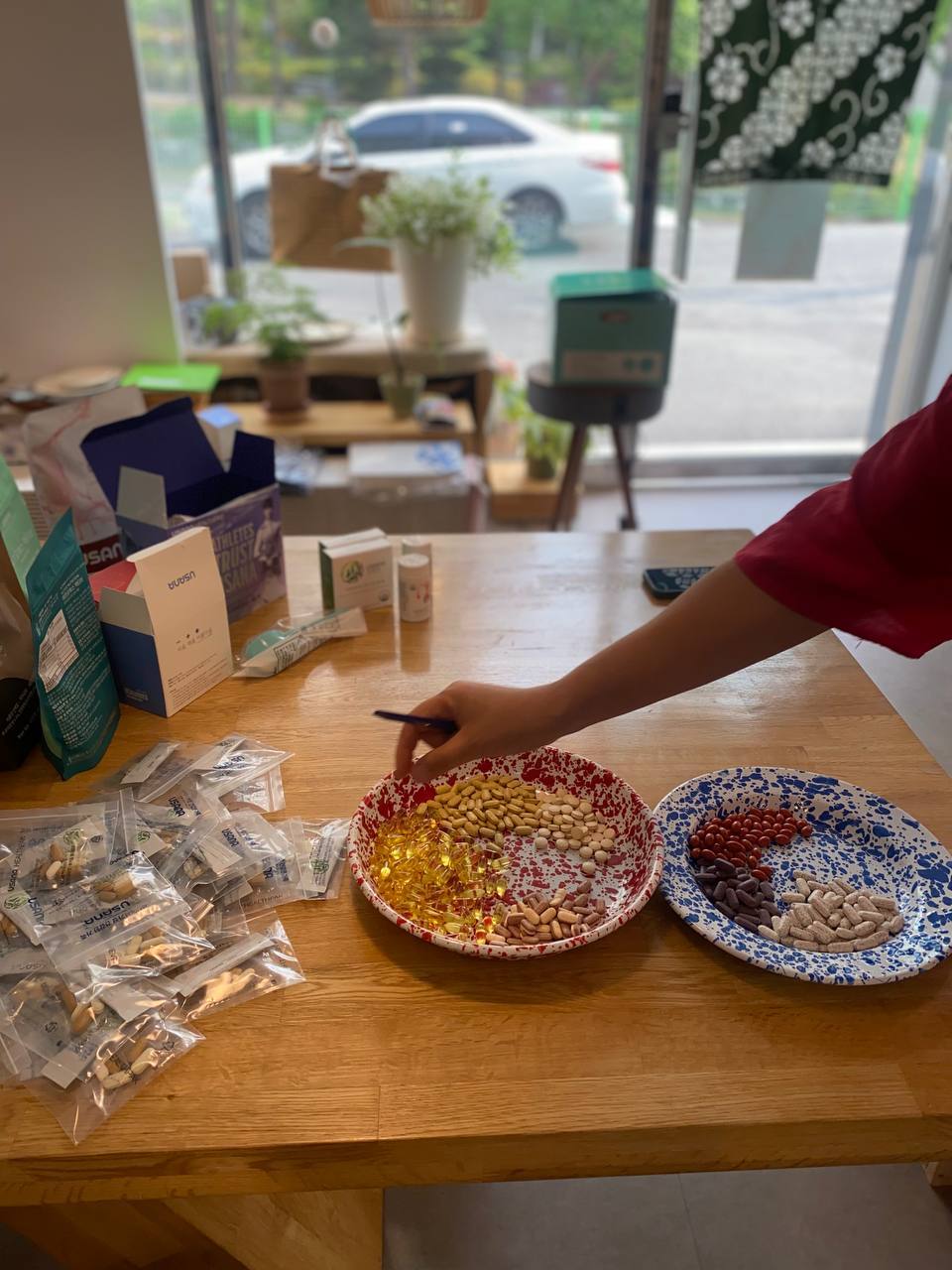 꼭두새벽부터 영문도 모르고 끌려왔지만 뭐하도 생산적인 일을 해야 될 것 같아 2주일치 내가 먹을 단백질+비타민을 담았다. (하나씩 먹기좋게 패키징해두면 외부에서도 끼니해결이 간편하다) 그러는 사이, 9시가 훌쩍 지났고, 아침을 먹으러 큰형부가 언니 가게로 찾아왔다. 큰형부의 아침도 단백질 쉐이크 한컵~