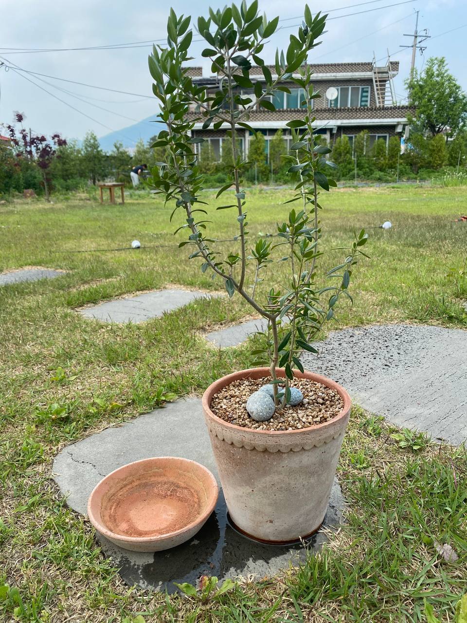 세번째, 맨 오른쪽 사진이 주말레 새로 심은 올리브나무다. 이탈리아 토분 <베르그>에 심었다. 베르그, 는 다양한 토분 중 요즘 나의 최애 팟인데 팟의 디테일이 조금씩 다르고 이름도 다르다. 헬레나, 엘레자베스, 데이지, 코펜하겐, 시모나. 사진속 팟은 헬레나다.