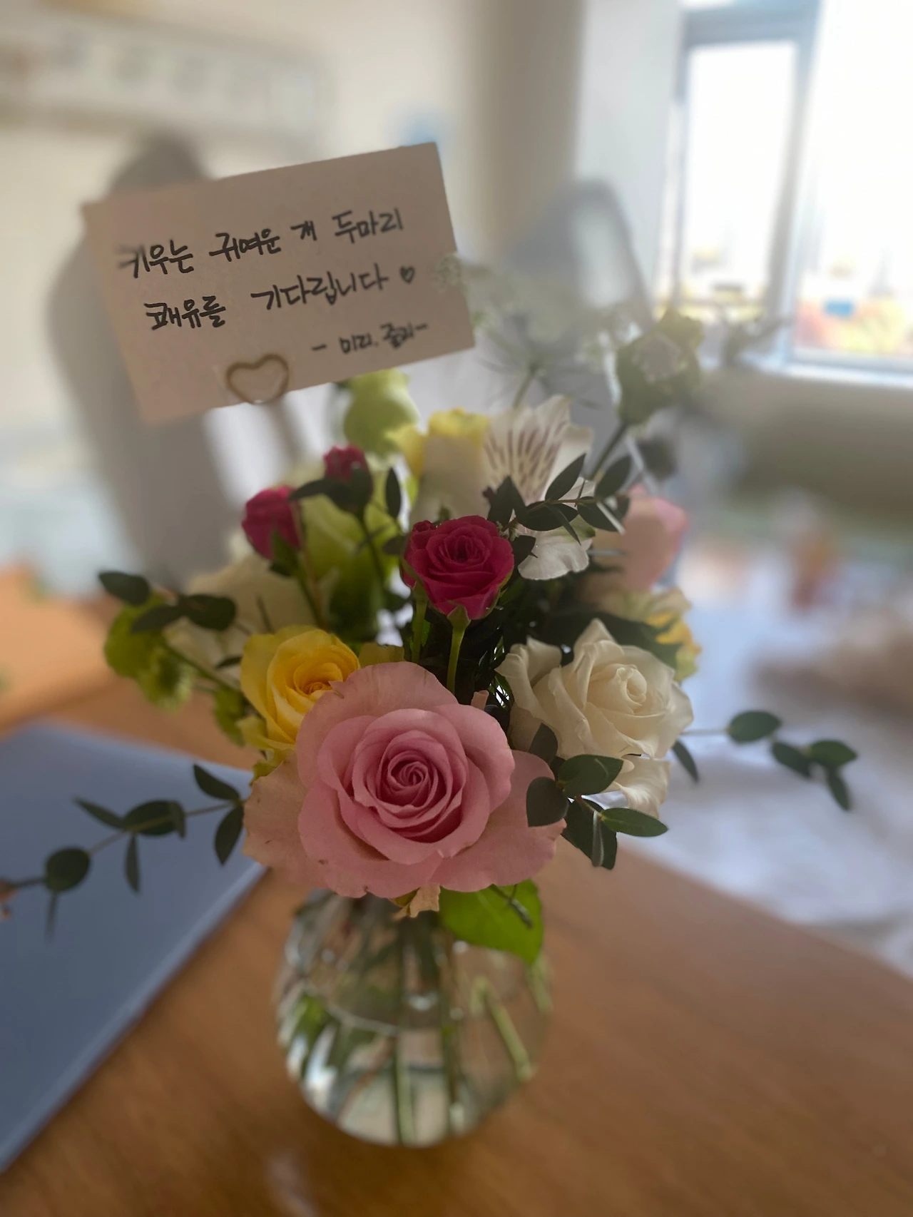 2021년 11월, 자궁근종 수술때문에 아산병원에 입원해있었는데 미리줄리가 병실로 꽃을 보내줬다!