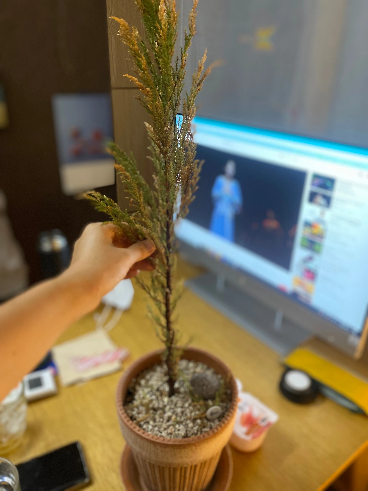 큰맘먹고 지니에게 선물한 베르그 토분위에 심은 율마가 이렇게 말라비틀어져서 내게로 돌아왔다. 고줄리 사장님께 분갈이 대신, 새로운 식물을 심어달라고 부탁드렸다.