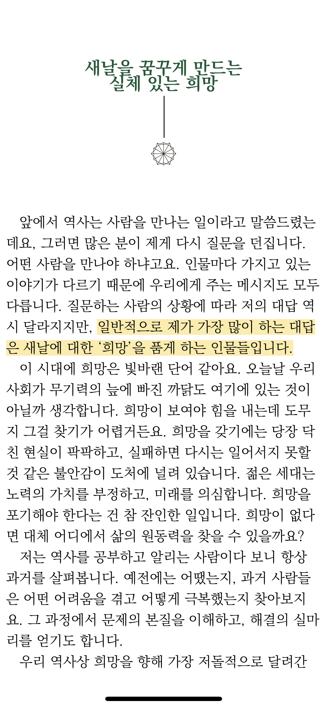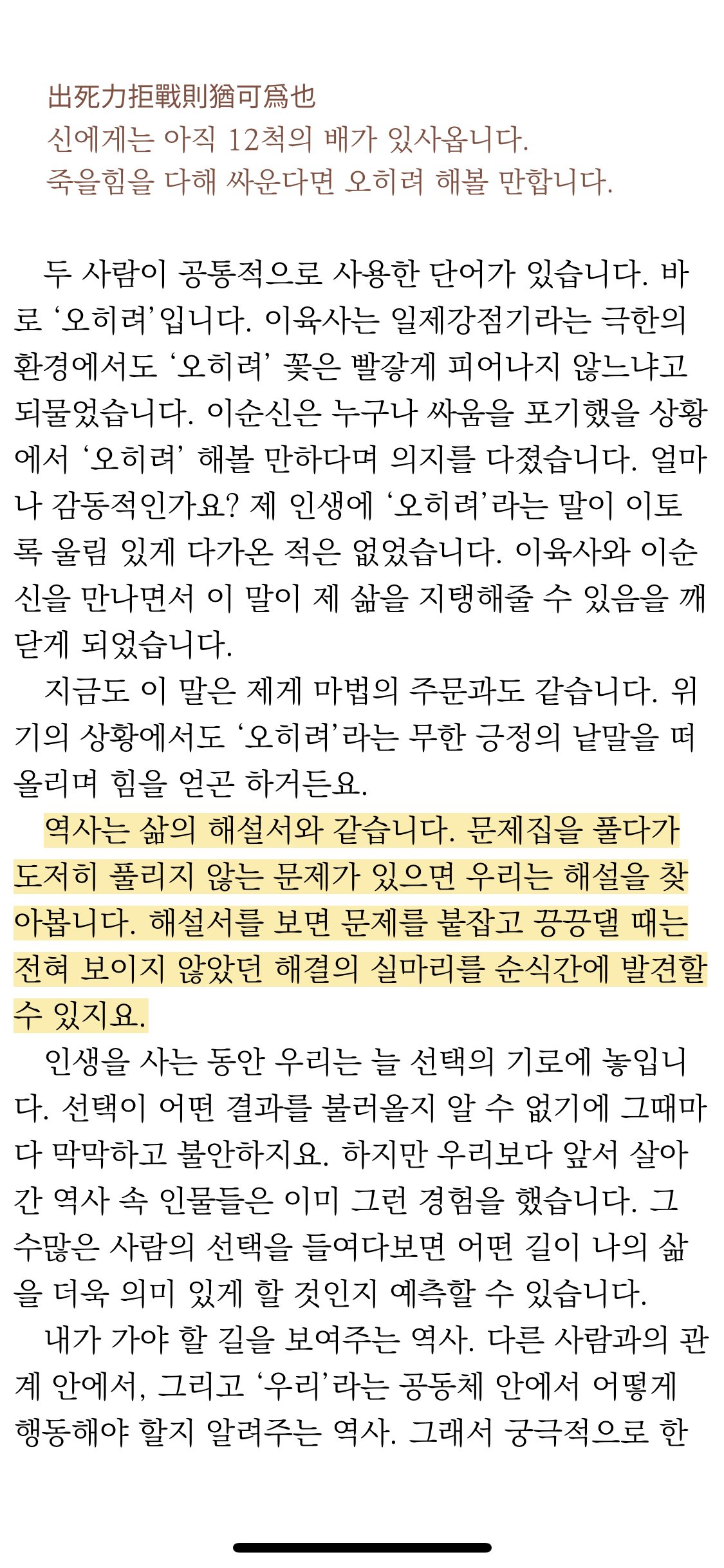 최태성 쌤을 중고등학교때 알았더라면 나도 이렇게 역사에 무지하지는 않았을텐데, 하는 아쉬움을 가지고 책을 읽었다. 독립운동가들의 독립운동 이동방향을 그려놓은 역사책의 화살표가 그냥 단순한 화살표가 아님을, 그 시대 독립운동 단체들이 많아서 외우기 힘들어도 그것이 얼마나 자랑스러운 우리의 역사인지를 알려주는 사명감을 가진 역사선생님이 대체 몇명이나 될까. 이 책을 추천해준 나의 팀원이자, 독서모임 <한뼘>의 동지인 캐롤에게 감사하는 마음으로 반나절만에 책을 다 읽었다.