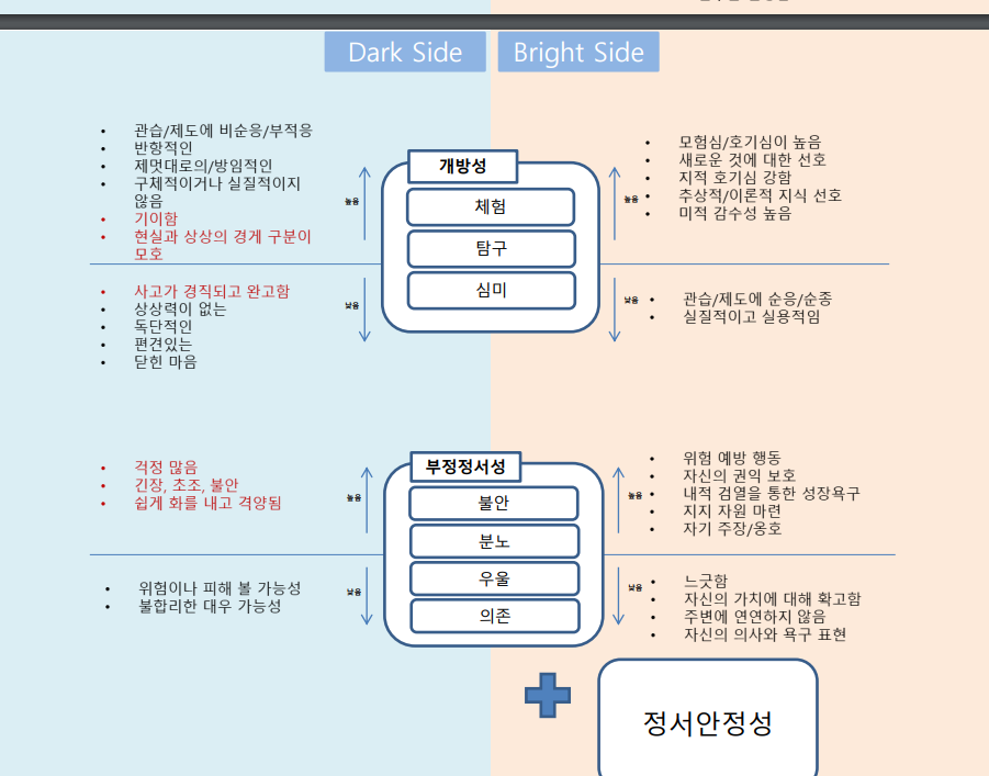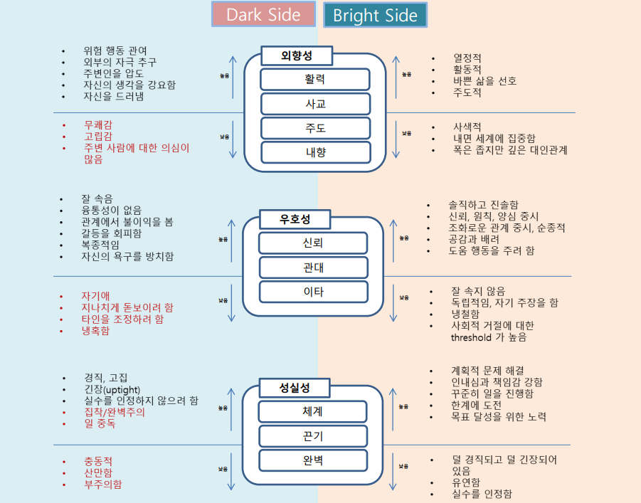 그리고 그러한 성격요인을 파악하고 Dark side는 줄이고, bright Side는 개발해나가면서