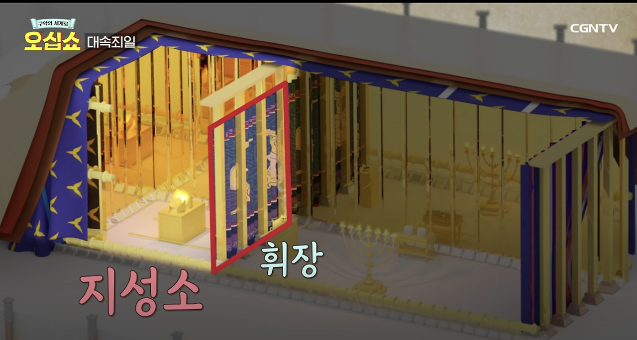 16장. 대제사장이 1년에 딱 한번 '지성소'로 들어감. 아무도 못들어가는데 모든 이스라엘 백성의 죄를 가지고 세마포 옷(하얀색)을 입고 들어가는데 대제사장조차 죄가 있으면 안되기에 수송아지로 속죄제를 드린 후 지성소로 들어가야한다. 이스라엘 백성 죄때문에 두마리의 숫염소를 제물로 드리는데 제비를 뽑아 한 염소는 속죄제물로, 하나는 아사셀 염소라고해서 광야로 내보낸다. 이 과정을 거친후 조심스럽게 대제사장이 조심스레 지성소로 들어간다. 사람들은 대제사장이 나오기를 기다리는데 누군가의 너무 큰 죄로 인해 죄사함을 받지 못하면 대제사장이 나오지 못한다. 휘장밖에서 기다리는 사람들. (대제사장이 살아나온것처럼 예수님도 희생제물이 되어 돌아가셨으나 3일뒤 부활하였다. 예수님이 없었다면 죄하나에 양한마리.....예수님이 십자가에 매달려 돌아가실때 정말 두꺼운 휘장이 두갈래로 쫙 찢어졌다)
