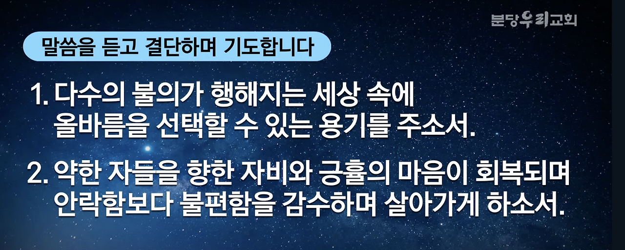 오늘은 5:30분에 일어나지 못했다. 6시에 눈을 떠보니 이미 선한목자교회 새벽예배는 끝난터라 1분간 망연자실하며 낙담했는데 간절히 원하는 자에게는 기회가 있는 법! 분당우리교회에서는 실시간 새벽예배는 끝이 났지만 30분 전의 새벽예배 영상을 처음부터 볼 수 있는 시스템으로 스트리밍 서비스가 되었다. 천만다행으로 여기고 송지우 목사님 인도아래 수요일 새벽예배를 드리게 되었다. 남들보다 30분늦었지만, 감사한 마음으로.