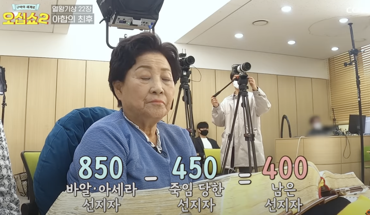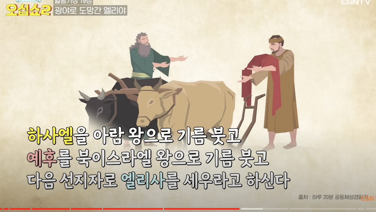 18장 3년동안 비가 안옴. 바알과 아세라가 풍요의 신이라고 생각. 비못오게 하는것은 하나님인데! 하나님이 엘리야에게 아합왕을 만나서 담판을 지으라고 명령하신다. 아합의 신하 오바댜. 엘리야가 오바댜를 먼저 만난다. 이세벨이 여호와의 선지자를 멸할때 선지자들을 몰래숨기고 식량을 챙겨준 오바댜. 나를 궁지에 빠뜨리지말아달라고 부탁. 그렇게 드디어 만난 엘리야와 아합왕. 아합이 엘리야에게 "이스라엘을 괴롭게 하는자여!'라고 말함. 당신이 여호와를 버리고 바알을 따르지 않았냐, 고 반박하는 엘리야. 바알과 아세라 선지자 850명을 갈멜산으로 오라고 해라! 850 VS 1로 갈멜산 결투를 벌이려고 한다.