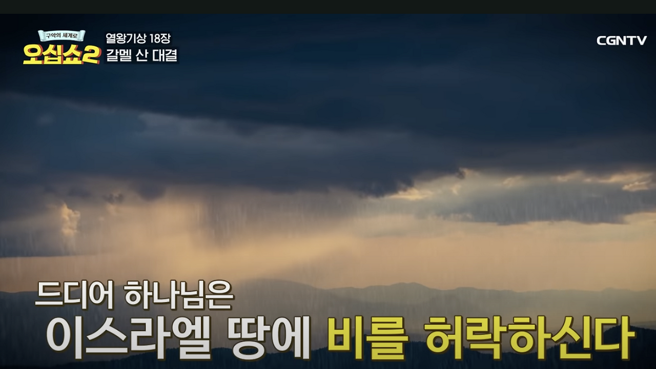 심지어 3번 반복. 물을 붓지 않아야 그나마 탈텐데...응답하시고 당신이 하나님인걸 알게하소서, 하고 기도하니 여호와의 불이 내려와 모든것을 태우게 된다. 바알선지자 모두를 처형한 엘리야! BUT 여전히 비가 안온다. 무릎고 무릎사이에 머리를 넣고 기도하는 엘리야(진심으로 기도한 것? 신학자들 모두 왜 그랬는지 정확히 말하지 않은 부분). 3년만에 몰려오는 비구름!