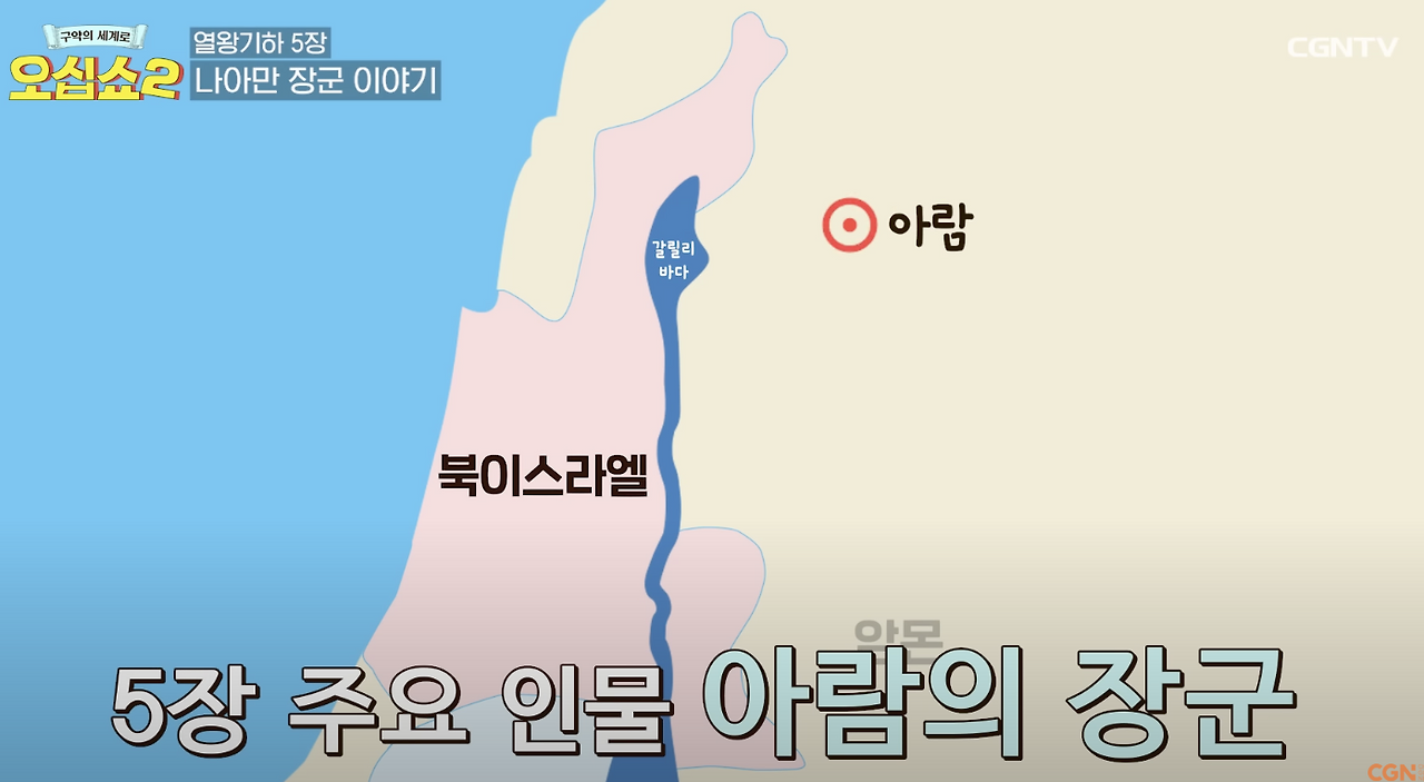 이스라엘 여종이 아람장군 나아만에게 북이스라엘 선지자는 나병을 고칠 수 있다고 말하자 아람왕이 북이스라엘왕 여호람에게 편지를 써서 낫게 해달라고 청한다. 엘리사가 나아만 장군에게 자기를 찾아오라고해서 요단강에서 7번 씻으라고 말한다.