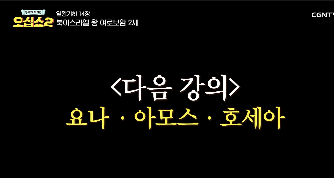 북이스라엘 왕 여로보암 2세가 등장한다. 41년간 태평성대! 여로보암 2세에 요나, 아모스, 호세아가 대거 출연한다. 왜 갑자기 선지자가 셋이나 등장할까? 태평성대에 하나님을 섬기지 않는 북이스라엘.