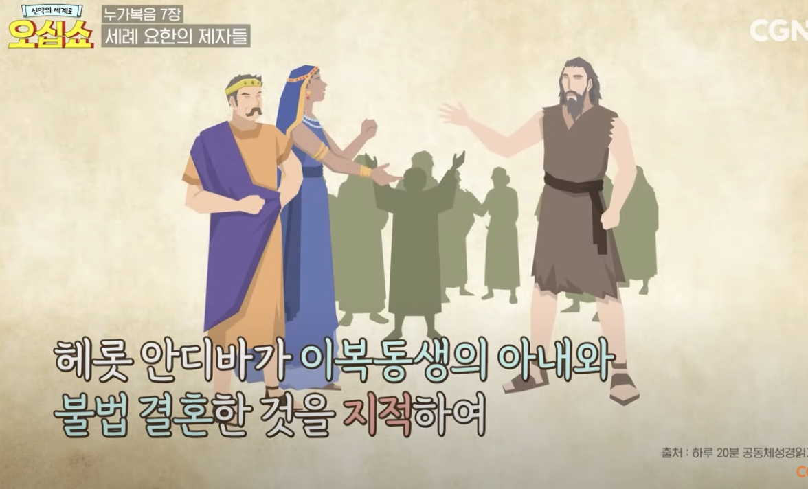 광야에서 활동하는 세례 요한. 유대인의 특권의식을 꼬집고 회개하라는 요한.
