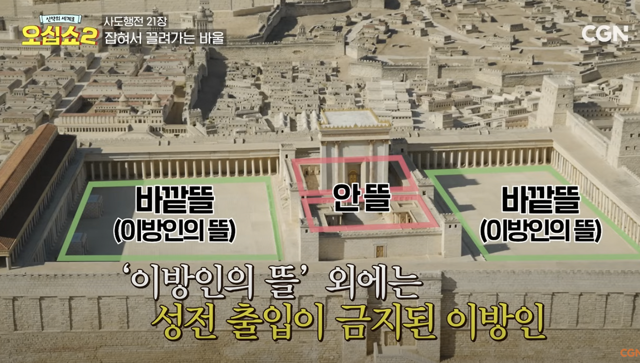 에베소 사람 드로비모(이방인)를 데리고 성전에 들어왔다며 바울을 잡아가는 사람들