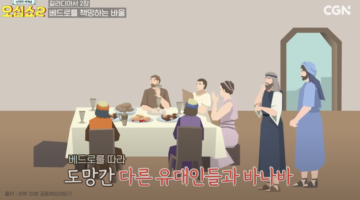 율법에서 벗어나 복음을 갖게 된 베드로에게 왜 억지로 이방인에게 유대인답게 살면서 율법에 얽매이게 하려하느냐고 바울이 베드로를 가르친다.