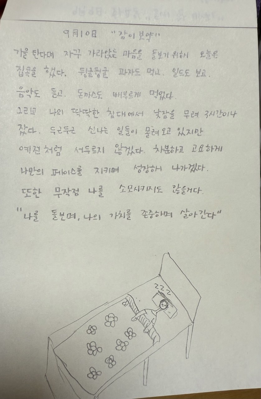 차분하고 고요하게 나만의 페이스를 지키며 성장해 나가겠다.