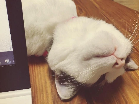 그러다 반응이 없으면 키보드 위에 턱 - 하고 앉아 아예 손목을 배고 눕거나