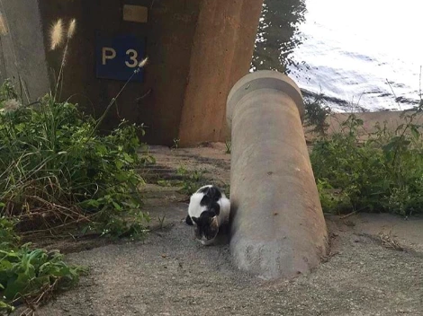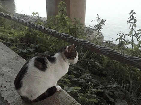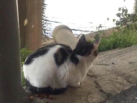 혼자 물가 쪽에 덩그러니 앉아 지나가는 사람들을 구경하던 꼬마 고양이.