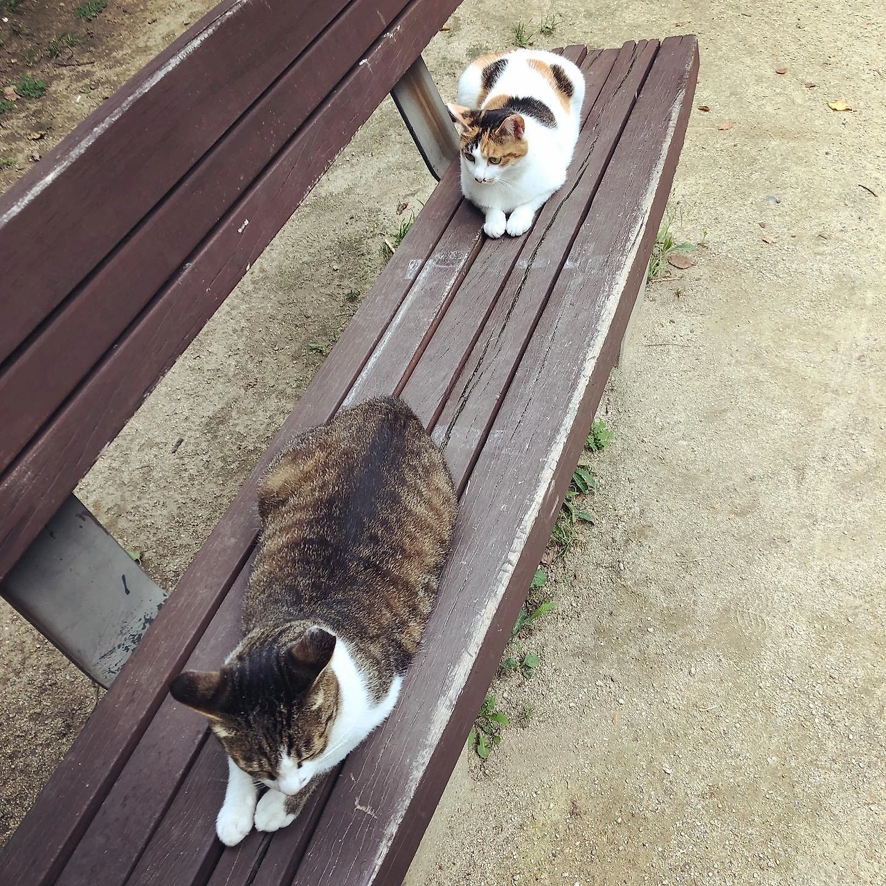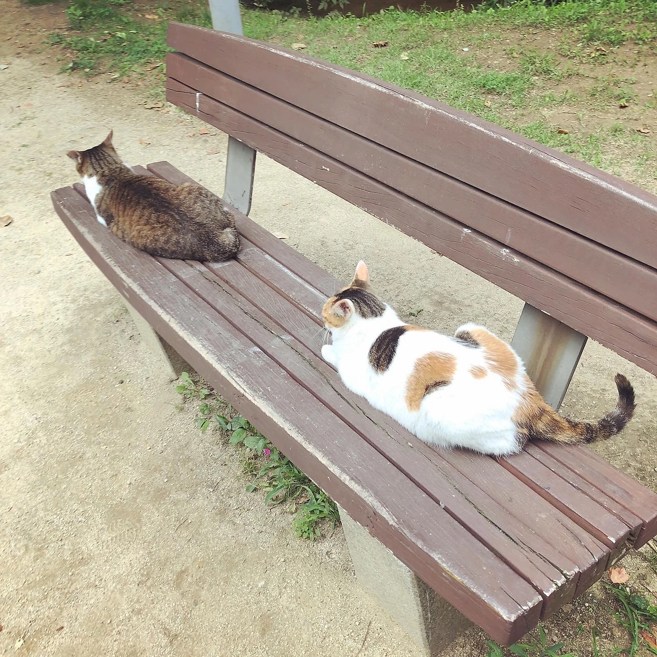 코점이 말고 고등어와 삼색이도 있는데 이 둘은 자주 벤치에 죽치고 앉아 있다.