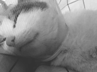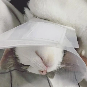 상처 부위가 덧나지 않도록 그루밍을 못하게 넥카라를 씌워야 했다.