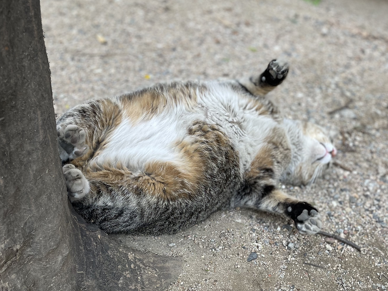 위에서 분주한 까치와는 달리, 나뭇가지가 떨어지든 말든 아무 생각 없는 뚱냥이 둘은
