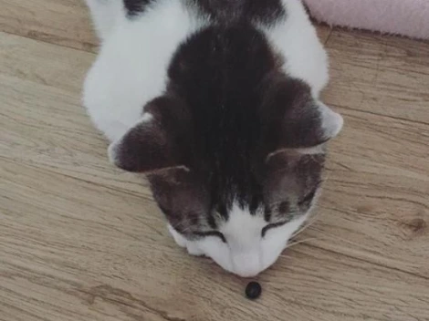부엌에서 눈에 보인 까만 콩을 장난 삼아 한알 던져줘 봤다.
