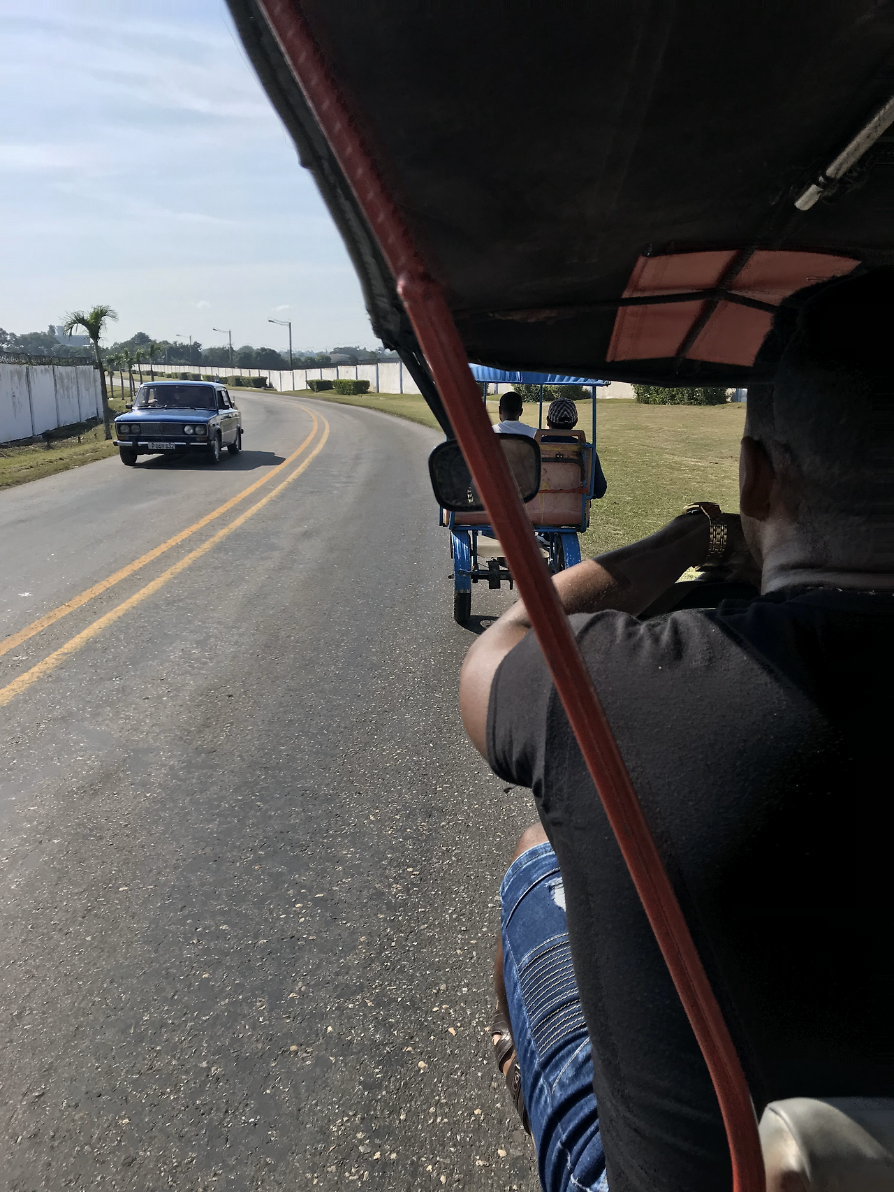 뭐 걸으려면 충분히 걸을 수도 있는 거리지만, 뜨거운 날씨 때문에 막막해지던 찰나, 함께 내린 쿠바 부부의 제안으로 같이 자전거 택시를 타고 공항까지 왔다. 그들은 선뜻 한 좌석에 둘이 같이 탔고, 나를 위해 한 자리를 내어 주었다. 천 원 지출. 사실 아낀 돈 보다, 망할 여행자 물가에 시달리다 쿠바 사람들이랑 똑같은 돈을 냈다는 게 위안이 됐다. 아니 덜 냈다.. 동전이 부족해서^^