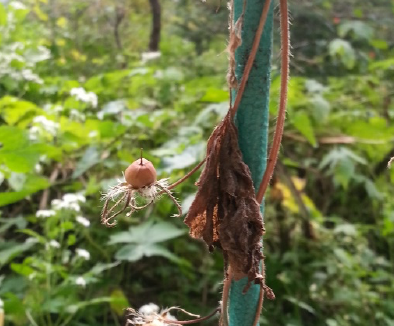 나팔꽃은 생을 마감한 모습 그대로 노끈에 매달려 있었어.