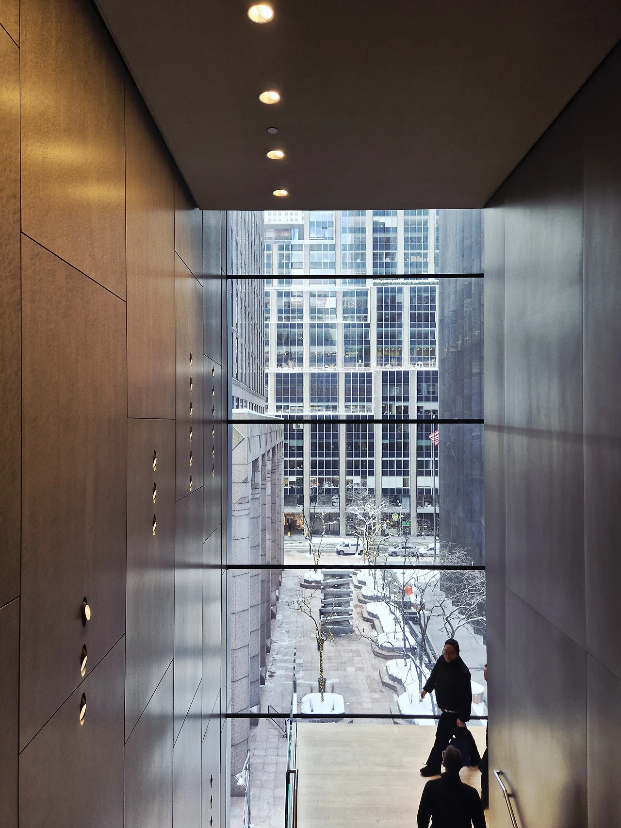 하얀 벽, 짙은 벽, 유리로 이어진 복도,