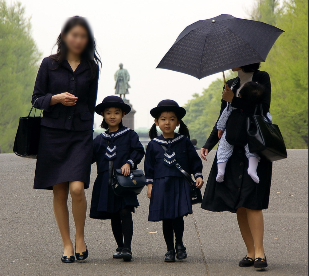 이것 외에도 세세한 교칙 또는 암묵의 룰이 많기 때문에 친구는 항상 시간에 쫓기고 다른 데는 신경을 쓸 수 있는 여유가 별로 없다. 지키지 않으면 가문의 수치까지는 아니더라도 하여간 그에 가까운 수치심을 느끼는 것 같았다. 굳이 저렇게 하면서까지 그 유치원에 보내야 하나 싶지만, 그 유독 힘든 유치원에 보내는 것조차 일종의 status symbol(신분 상징)이기도 한 것이다. 워킹맘은 엄두도 못 낼 규칙들이다. 이 유치원 정도는 아니더라도 동네에 일본 사립 유치원 중에 유명하거나 상류층이 유독 많이 다닌다더라 하면 대부분 엄격한 규칙들이 있다. 그런 유치원들은 대체로 아이들이 기관에서 보내는 시간도 짧으며 (수요일은 두 시간, 나머지 요일들은 5시간 내외) 항상 끝나는 시간 무렵에 앞에 무슨 장례식장 마냥 어둑어둑한 남색 옷, 남색 구두를 입고 풀 메이크업한 채로 자전거를 타고 있는 엄마들로 북적인다. 그러한 고생을 무릅쓰고서라도 아이를 꼭 그 유치원에 보내고 싶나 보다.