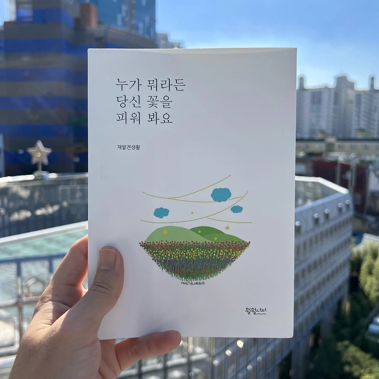 제목 짓기 어렵다. 시집 보면 간간히 무제와 제목없음. 두 개의 제목이 눈에 띈다. 그만큼 제목 짓기가 어려운 것인듯. 앞표지와 뒤표지는 광고라고 생각되는 곳이라. 카피라이터 글귀처럼 눈에 확 사로 잡히는 무엇인가. 생활에서 재발견되는 책은 읽을 때마다 새로운 느낌을 받는다. 시인은 너와 나의 도시에서 누가 뭐라하든 자신의 꽃이 피어나기를 응원하는듯. 사람이 집중되는 시에서 한 명의 삶은 식물이 담긴 화병처럼. 인간의 삶은 한 곳에서 피어나는 식물인듯, 식물이 피어나는 공간이 인간의 전부인듯. 누가 뭐라든 자신만의 꽃으로 향기를 갖기 바라는 책이었다.