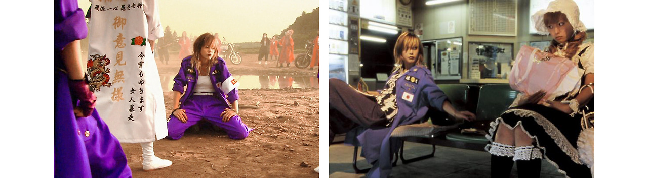 진정한 B급 영화의 정수를 보여준 <불량공주 모모코>. 로코코풍의 드레스에 푹 빠진 모모코와 이치고의 긴 교복 치마의 레이디스 스타일 교복과 특공복을 보고 있으면 안 어울리는 것 같으면서도 절묘하게 어우러지는 한 쌍이라는 생각이 든다. 모모코와 이치고의 관계에 대한 내용은 영화에서 직접 확인하시길. 피보다 진한 우정이 무엇인지 엿볼 수 있는 기회니까. 그런데 이 영화의 백미는 다름 아닌 이들의 환상적인 코스튬이다.