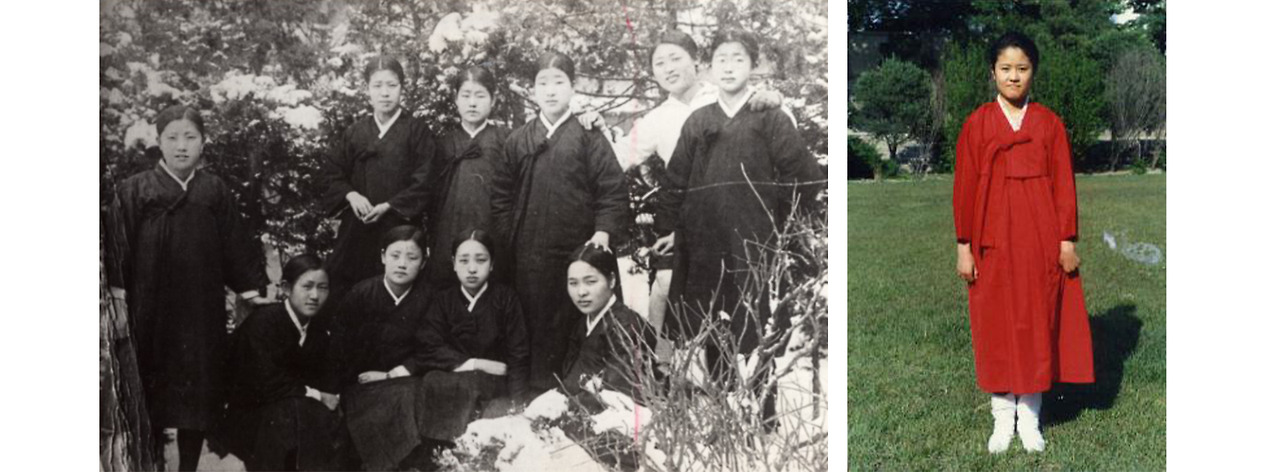 저 멀리 있는 영국을 살펴봤으니, 우리나라 교복에 대해서도 필히 다뤄야 할 것. 영국 최초의 교복과 비슷하게 우리나라 최초의 교복은 보육 시설에서 시작되었다. 바로 1886년의 이화학당 다홍색 한복이 우리나라 교복의 시초.