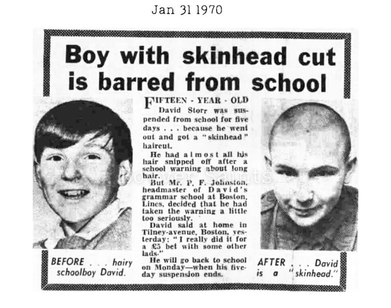 5파운드면 현재 가치로 약 4만원 가량 되는 돈이다. 4만원이면 머리를 좀 밀 수도 있지. 어째서 이런 과잉 대응으로 보답했을까? 학교는 데이비드의 일탈을 보고 다른 학생들이 따라 할까 봐 걱정됐던 것.