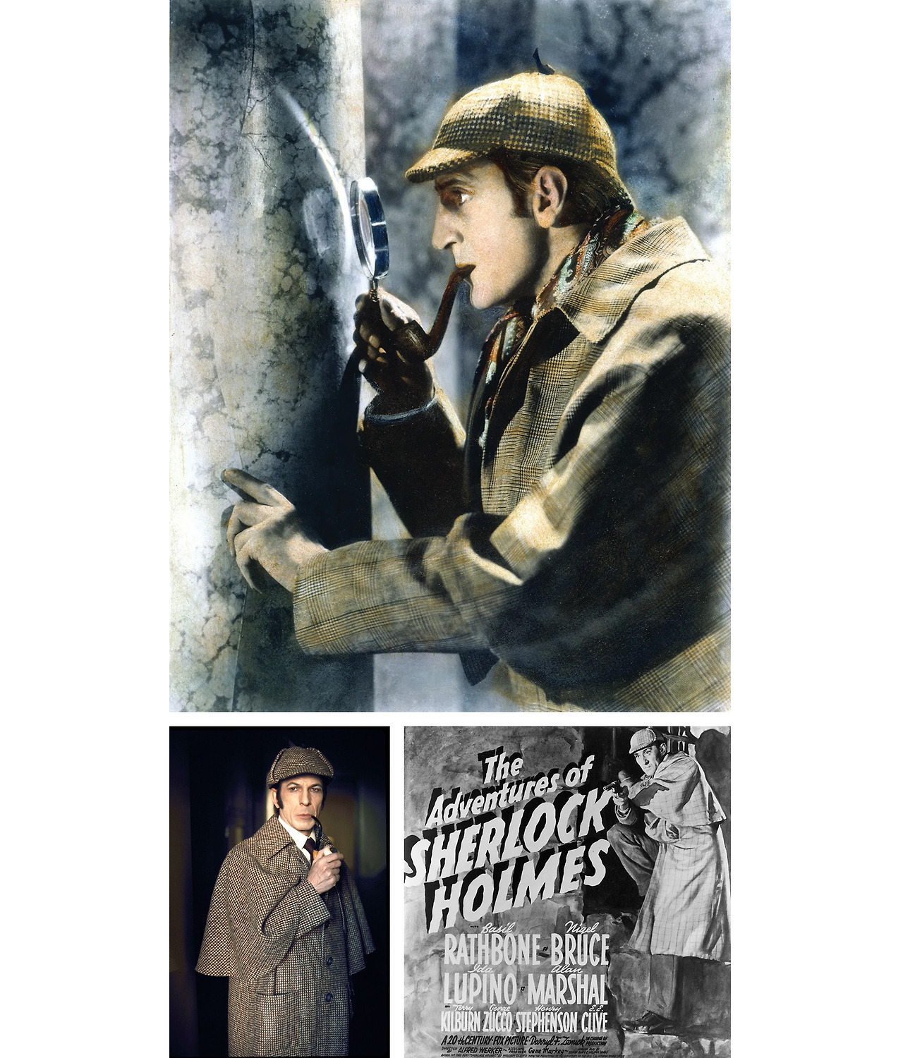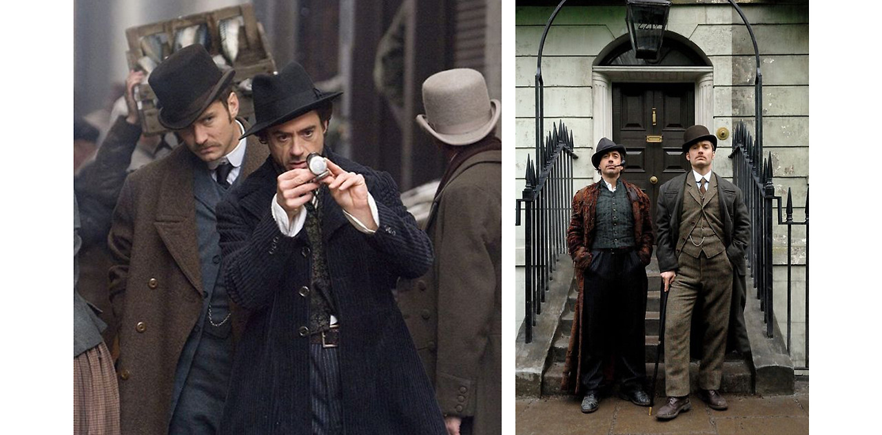 우리가 흔히 떠올리는 탐정의 전통적 이미지상은 모두 셜록으로부터 기인한 것이라 보면 된다. 사냥 모자와 트렌치코트, 소매가 없는 대신 케이프가 달린 인버네스 코트는 그가 즐겨 착용하는 대표적인 아이템. 로버트 다우니 주니어(Robert Downey Jr.)와 주드 로(Jude Law)의 콤비 플레이를 볼 수 있는 영화 <셜록 홈즈>에선 이러한 이미지를 잘 재현해내고 있다.
