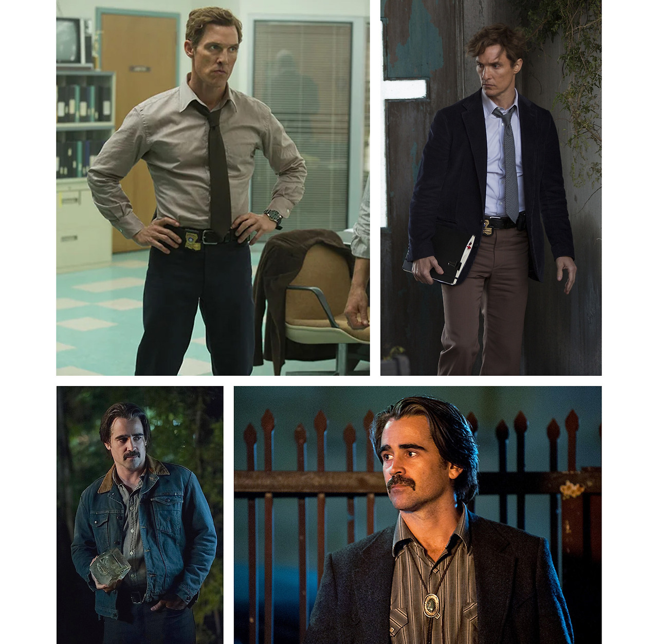 세 시즌 모두 90년대를 배경으로 하여 보다 현대적인 탐정의 아웃핏을 감상할 수 있다는 게 인상적이다. 독립적으로 일하는 사립 탐정과는 달리 국가에 소속되어 사건들을 처리하는 집단이기에, 최소한의 TPO는 필수. 치렁거리는 트렌치코트를 과감히 벗어던지고 슈트와 타이를 갑옷처럼 장착한 모습이 매우 정겹다.