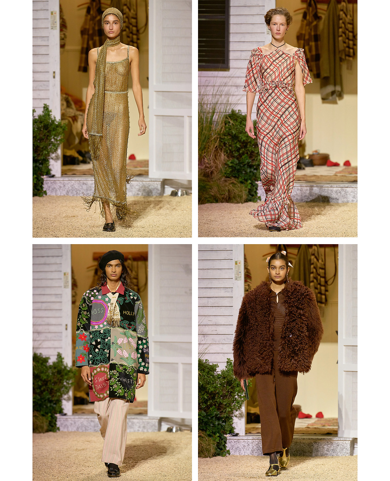 미스 마플과 미스 피셔처럼 독특한 무드로 승부 하고 싶다면, BODE가 딱이다. 곳곳에서 풍기는 20년대 느낌과 빈티지한 니트웨어들이 런웨이를 차지하고 있으니까. 플라워 패턴의 재킷과 물 흐르듯 떨어지는 우아한 골드 드레스는 남다른 취향의 당신을 충분히 만족시킬만한 아이템이 되어줄 듯. 패셔너블한 탐정이라니, 이 얼마나 획득하기 어려운 칭호인가!