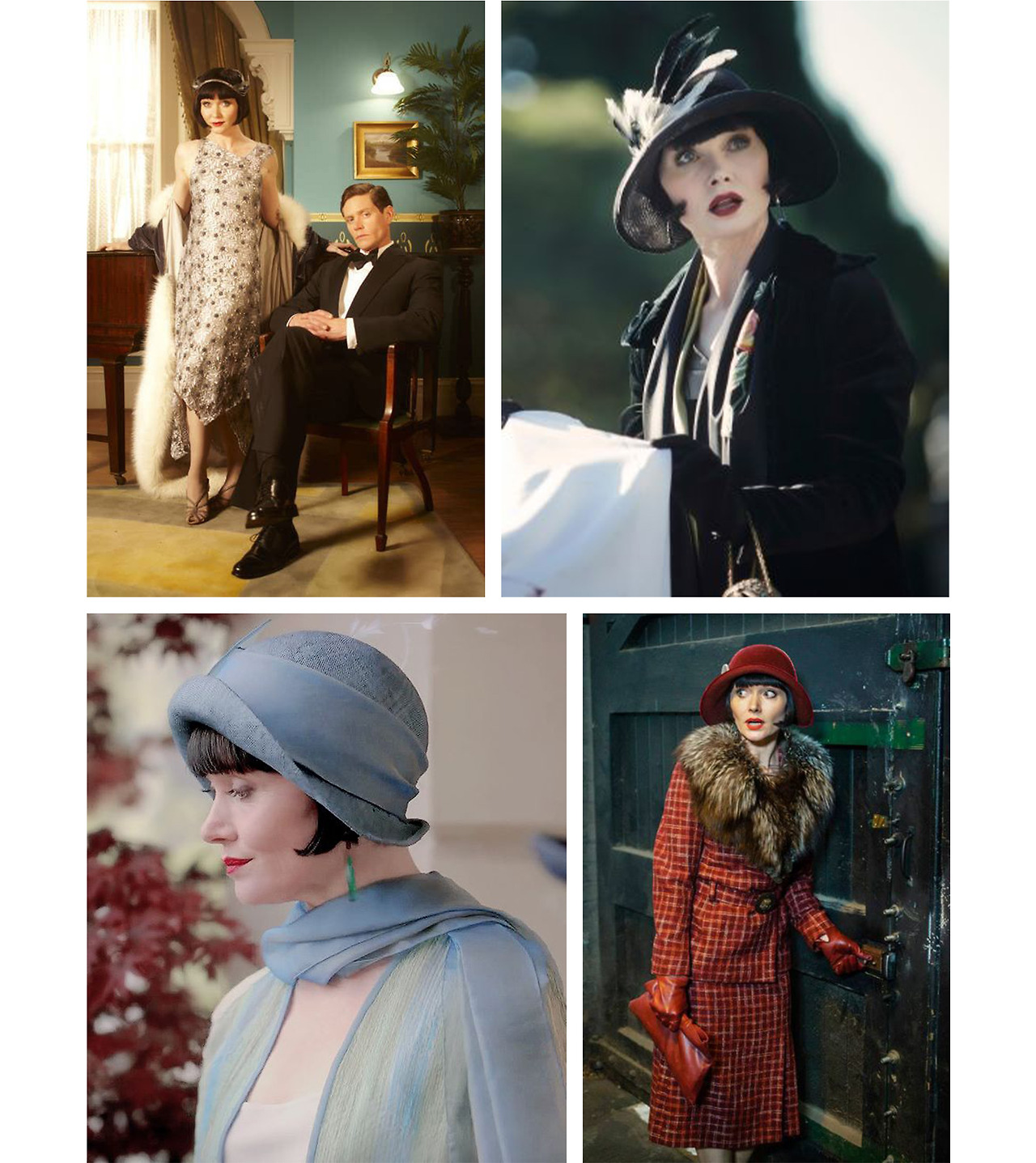 시리즈 전반에 흐르는 20년대 무드는 패션필름이라고 해도 손색없을 만큼 완성도가 높다. 몸 전체를 사뿐히 감싸는 시폰과 실크 텍스쳐, 무릎 밑으로 떨어지는 롱 스커트, 스팽글과 깃털, 마지막으로 당시 최신 유행이라 여겨졌던 클로슈 모자까지. 의상 장식과 헤어핀, 주얼리도 무엇 하나 평범한 게 없다. 마치 영화 <위대한 게츠비>의 데이지판 스핀 오프를 보는 것만 같은 기분.