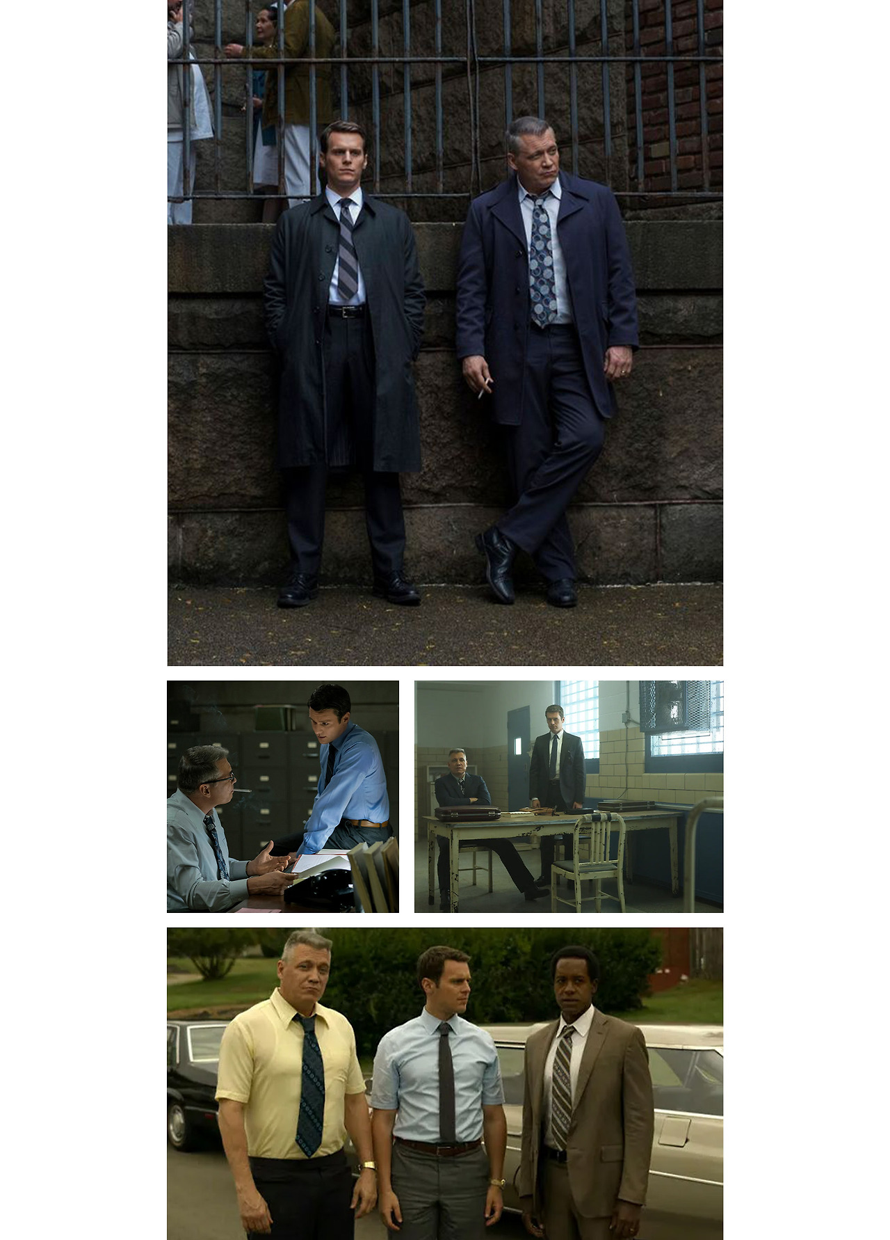 그렇다면 넷플릭스의 오리지널 수작, <마인드 헌터>의 패션은 어떨까? 보수적인 1970년대를 다루고 있기에, 등장인물들 모두가 전형적인 사무직 정장 차림이다. 하지만 범죄자를 직접 대면해야 하는 프로파일러의 입장에선 이렇게 보이는 복장으로 확실한 신분의 차이를 부각해야 했을 듯.