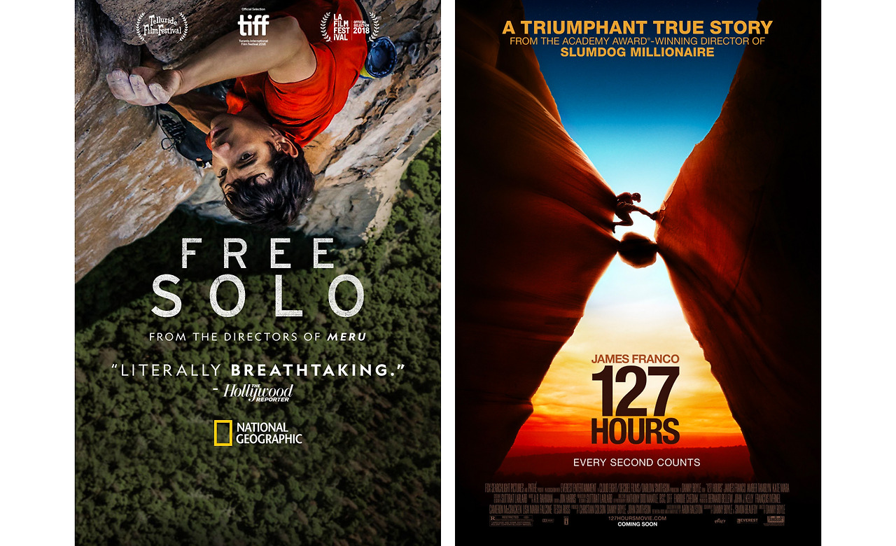 보호 장비도 없이 보기만 해도 아찔한 경사의 절벽을 오르는 주인공의 모습에서 한 인간이 가지는 그 어떤 무모함과 동시에 비장함의 끝을 보여주는 다큐 <프리 솔로>, 캐니언 랜드로 여행을 떠난 한 인물이 바위 틈에 팔이 끼인 채로 127시간 동안 생존해 내며 운명을 결단하는 모습을 그려낸 아카데미상을 수상 대니 보일의 영화 <127 시간>.