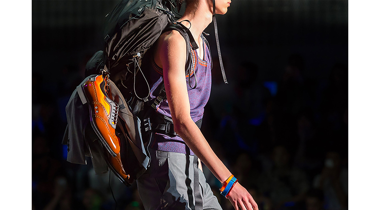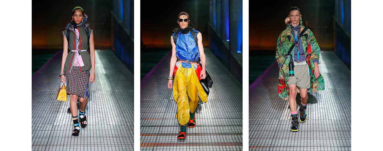 컬러풀한 베스트, 경량 소재의 바람막이 재킷, 그래픽 프린트를 강조해 도시 속의 클라이머가 입을 법한 아웃도어 룩을 구현해낸 PRADA 2017 SS 컬렉션.