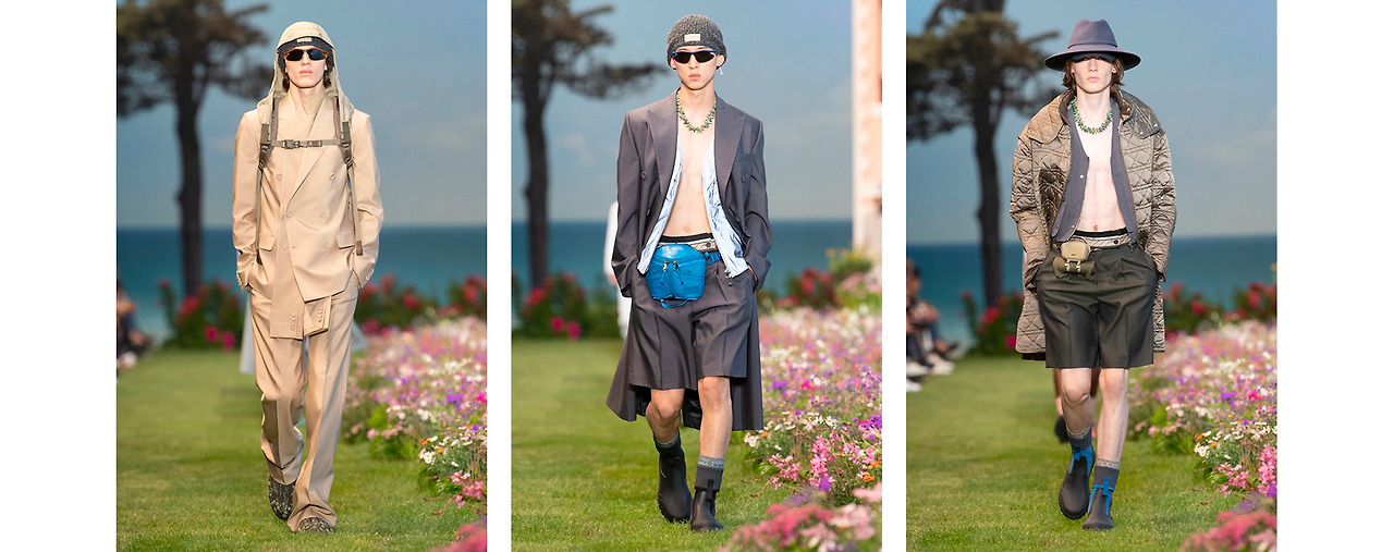 꽃이 만개한 정원을 배경으로 펼쳐진 Dior 2023 SS 컬렉션은 기존의 우아함에 하이킹 백팩, 기능성 벨트, 자켓으로 대표되는 아웃도어 스타일을 더했다.