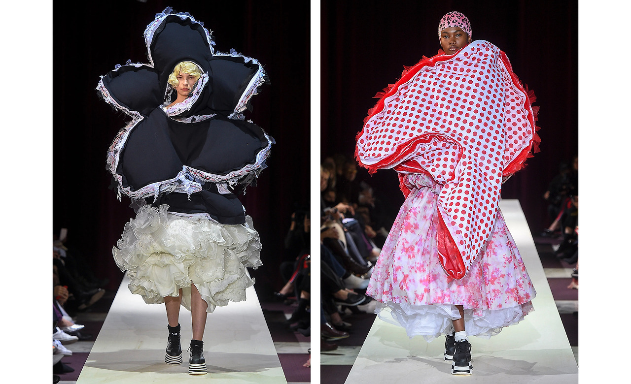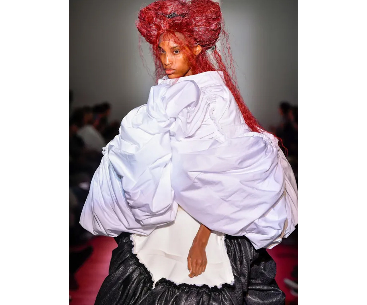 오페라적인 웅장함, 오트쿠튀르 직물과 색상, 화려한 자수가 만나 이룬 시너지! 이 모든 건 정체성과 성별이라는 주제에 대한 가와쿠보의 도전, 그 자체다.